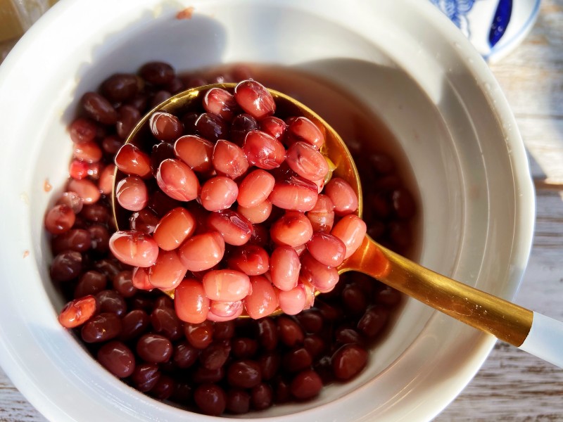 1:首先红豆一定要用水浸泡一晚,也就是12小时以上,夏天比较热可以放冰箱冷藏浸泡。