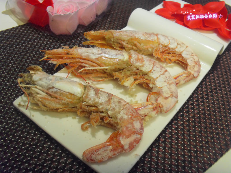 1:把买回来的虾洗干净,滤干水;开四袋晶盐或海盐或日晒盐,下锅翻炒,炒热为止;把虾用锡纸包好,撒点胡椒粉和一点点盐,然后包二层.一层开口朝上,一层开口朝下;把炒热的盐铺一层在砂锅底部;放入包好的虾;再铺上剩下的盐,把锡纸包完全盖住;小火慢焗,一斤虾大约需焗半小时,中间不用理.