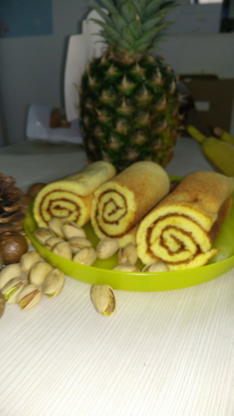 7:刷在考好的蛋糕皮上,卷起来,就成为蛋糕卷了。