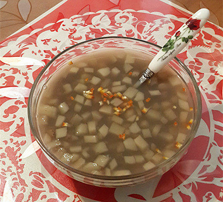 糖桂花5g;金橘饼10g;冰糖50g;淀粉10g;