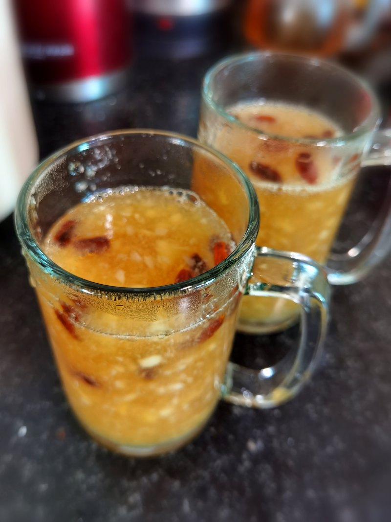 3:锅中加水4碗,先下马蹄和枸杞烧开后煮10分钟;