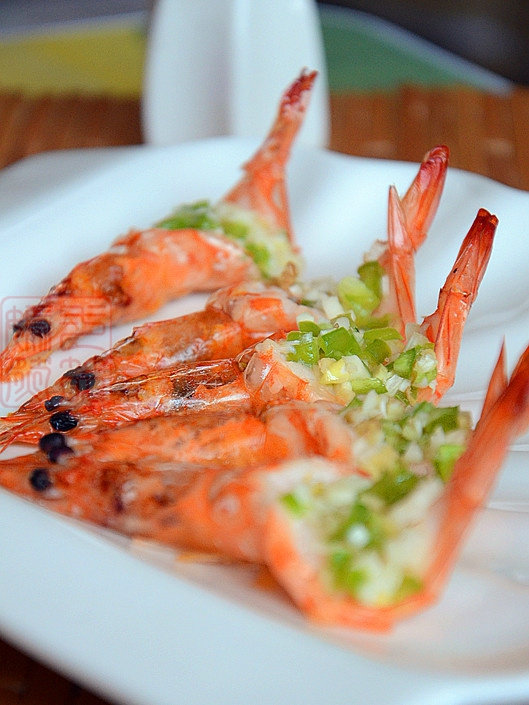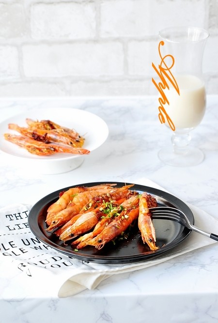 虾烤好以后再撒葱末,辣椒碎,喜欢黑胡椒或者椒盐的也可以再来点儿做为调味。