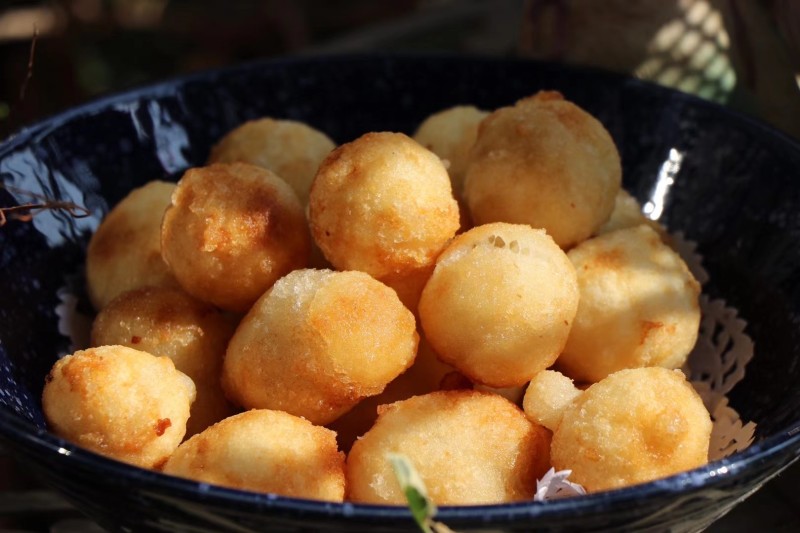 6:炸元宵也是非常要求技术的,小火不停的翻动,入口酥而不散、甜而不腻、齿颊留香!满满都是小时候青红丝的味道!