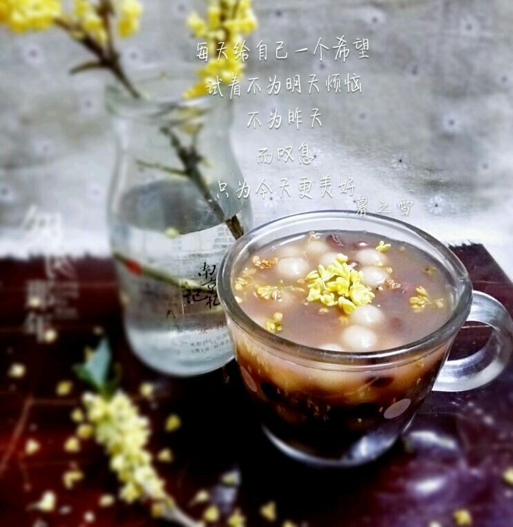 1:准备好提前泡好的红豆,元宵和糖桂花