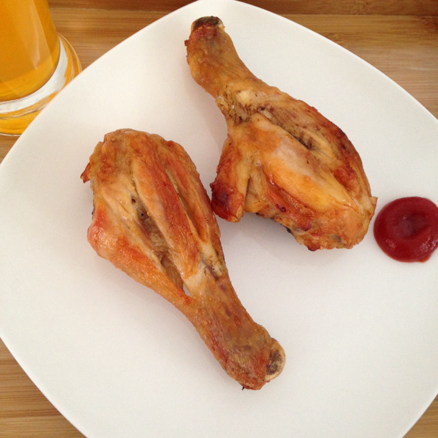 6:看着鸡腿转色就可以了(我用了大约40分钟左右烤好)装盘,好香...