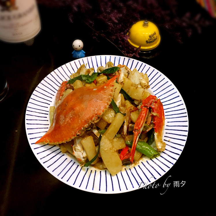3:花蟹处理好后切小块,大爪记得拍裂容易入味