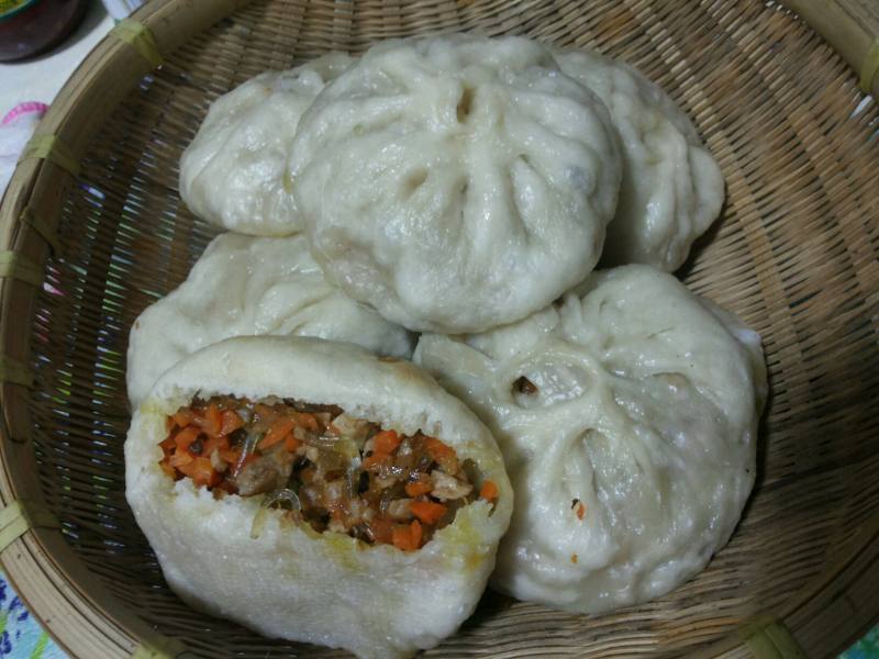 面粉适量;胡萝卜适量;香菇适量;大葱适量;肥瘦肉适量;姜适量;粉丝适量;