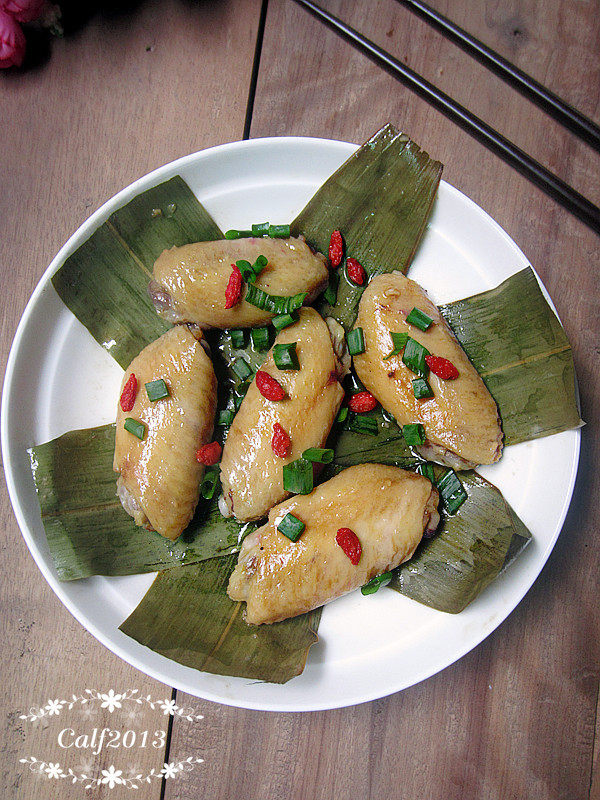 10:打开粽叶,撒一些胡椒粉、蒜末、葱碎,淋上香油,重新盖上粽叶再蒸10分钟。出锅后再撒一点葱碎即可。