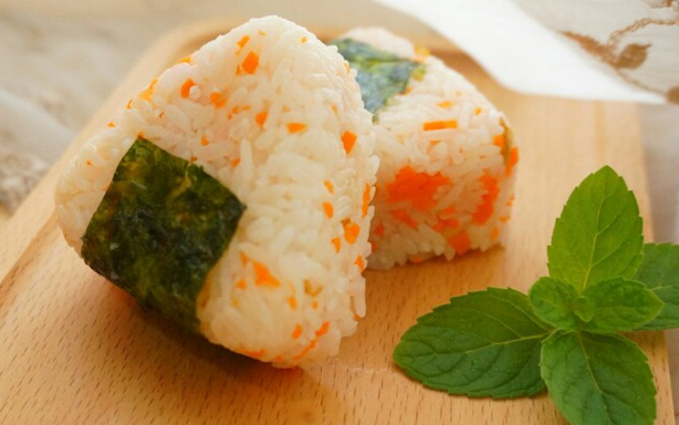 米饭适量;胡萝卜粒适量;自制肉松适量;紫菜适量;