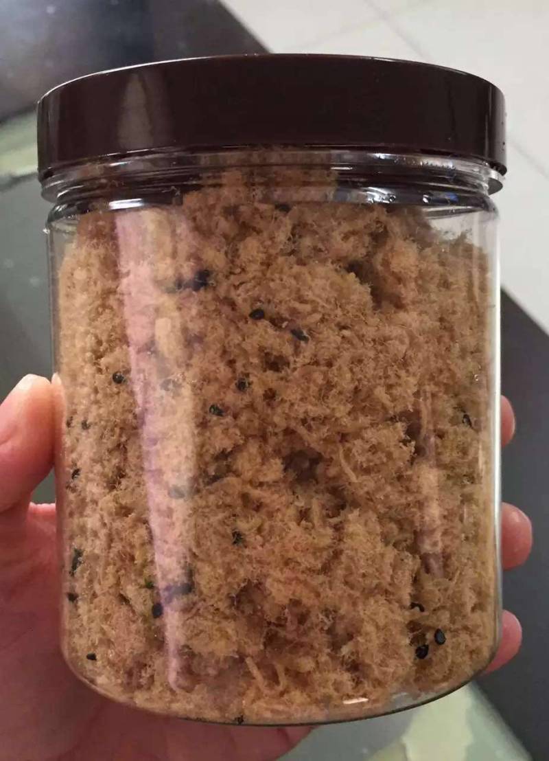 5:然后把肉撕成肉丝,放入面包机里,启动肉松程序,不够干可以再翻炒下。炒好的肉松可以加些炒熟的白芝麻或者海苔,吃起来特别的香