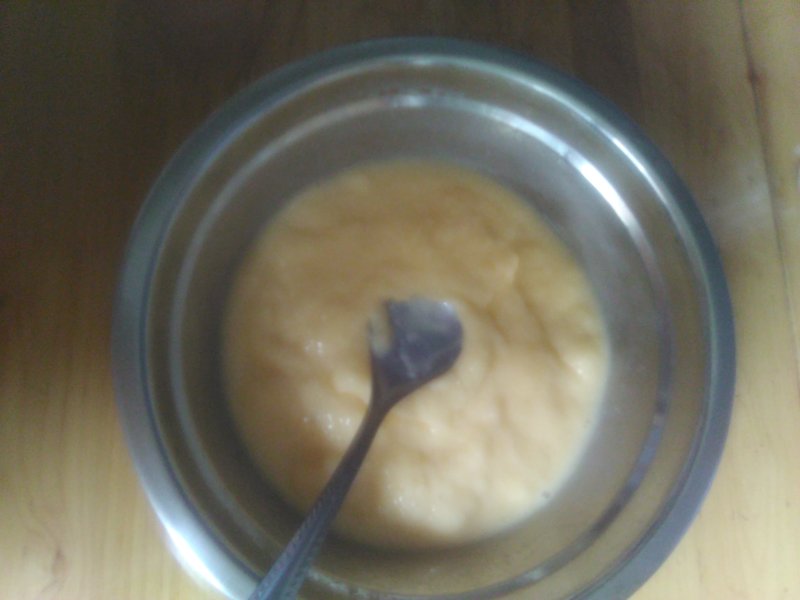 3:用最小的火力将其融化,不停搅拌,使蛋黄受热成熟,晾凉后使用。