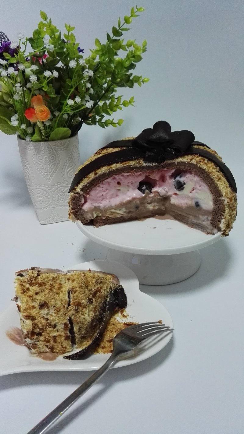 13:冷冻时间不够,不然切面更漂亮,三色冰激凌与黑樱桃层次更分明哦