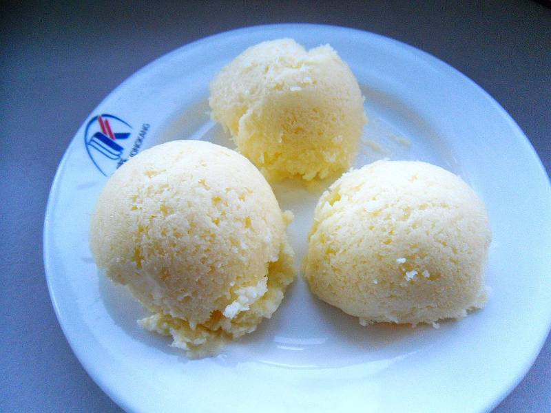 4:中间留个口,用小调羹或筷子挖起一小块雪糕塞进里面。