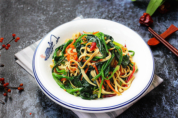 椒油炝拌菠菜豆皮