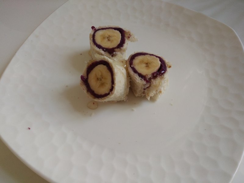 小细节每一步里都说过了,香蕉选择细一点,我这次买的太粗,吐司片又比较小,边上差一点卷不起来!