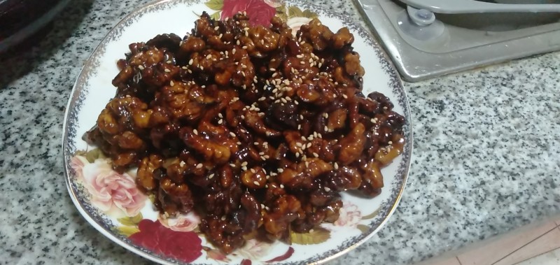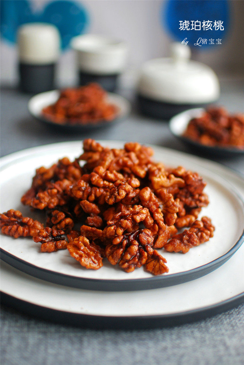7:营养又香甜的琥珀核桃仁就做好了,核桃有健胃、补血、润肺、养神等功效。如果你和我一样,也不爱吃核桃,那么这样做一下,你肯定会爱上核桃的呵呵。