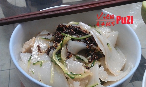 5:一份色香味具全的凉皮做成了,咋样?快给全家做一份吧!(辣椒油的色相好像不太好,下次继续努力!)