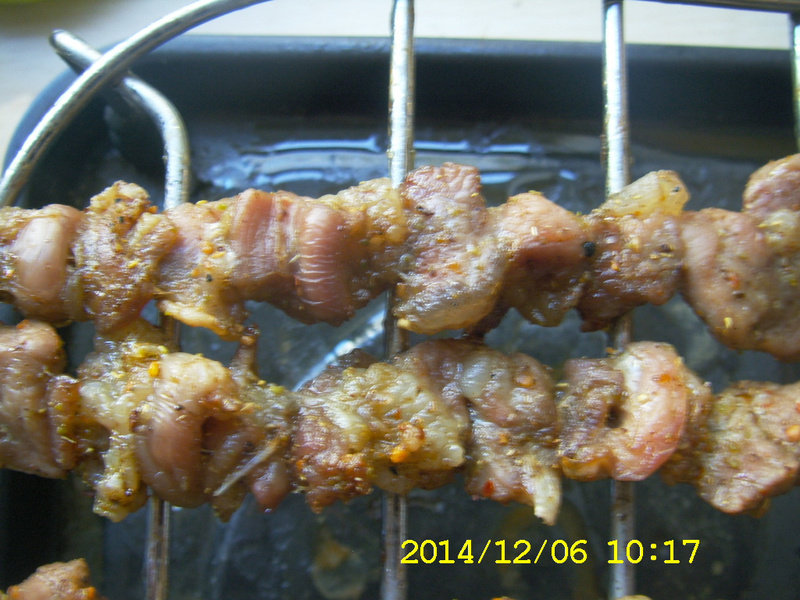 5:按烤肉键15分钟,剩余5分钟把肉串翻一下,再烤。