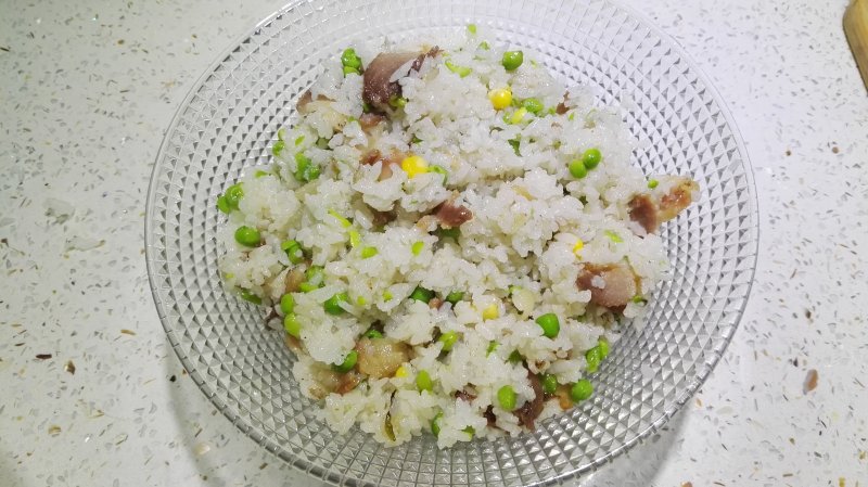 米饭350g;青豌豆适量;腊肉适量;