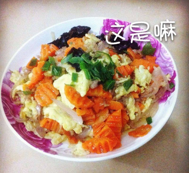 胡萝卜一根;鸡蛋两个;木耳少许;洋葱少许;