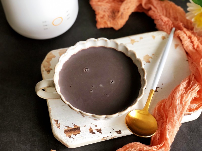 5:只需要20分钟,当提示音响起,就是工作停止,超级好喝的黑芝麻黑豆豆浆就完成啦,倒在碗里,加入适量糖,真的太美味了。