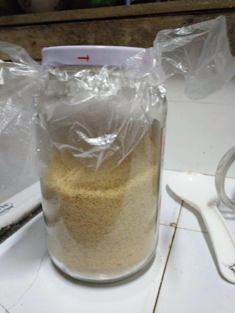 7:做好的面包糠用保鲜袋装起来。嗯嗯,明天用来做炸芋头可以。
