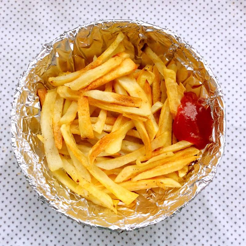 5:用锡纸将撒了盐和黑胡椒的薯条包裹起来,烤箱预热好后放入,220度,25分钟