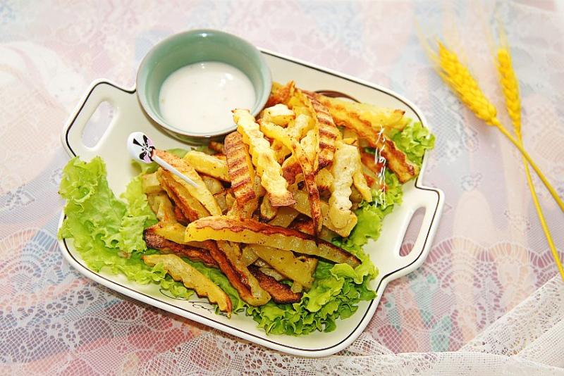 7:出炉装盘。简单、少油、健康,口感好,直接吃已经是非常美味了,再粘上沙拉酱,那真是有滋有味美滋滋啊!无可挑剔。