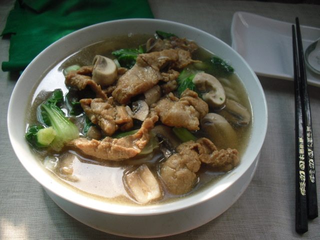 米粉适量;口蘑适量;肉片适量;白菜适量;