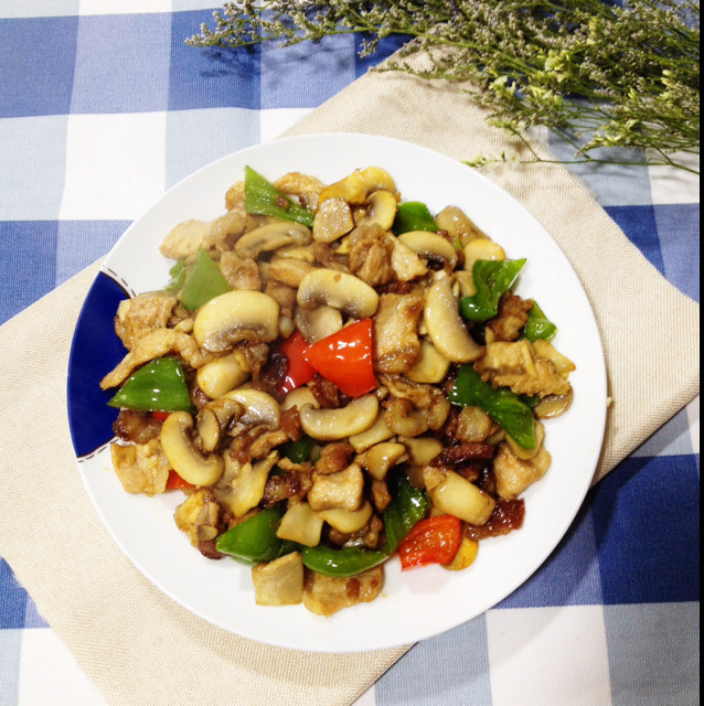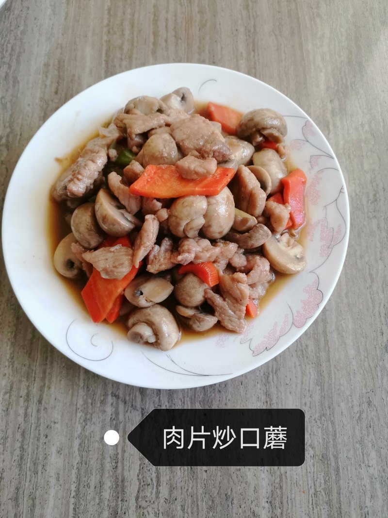 1.肉片加一点淀粉,吃起来会更嫩。2.口蘑切片不要切太薄。3.口蘑炒到后面容易出水,如果水多,用淀粉调成汁,倒进里面可收水。