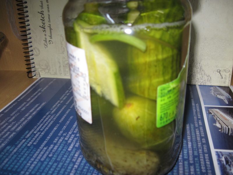 3:吃完的酸黄瓜罐头不要扔掉,这是腌黄瓜的精华,依次摆放在罐头瓶子里,尽量将缝隙填满。