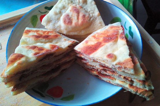 为了追求酥脆的口感,我将烙熟的饼炸了一下,不炸也可以,也很好吃。