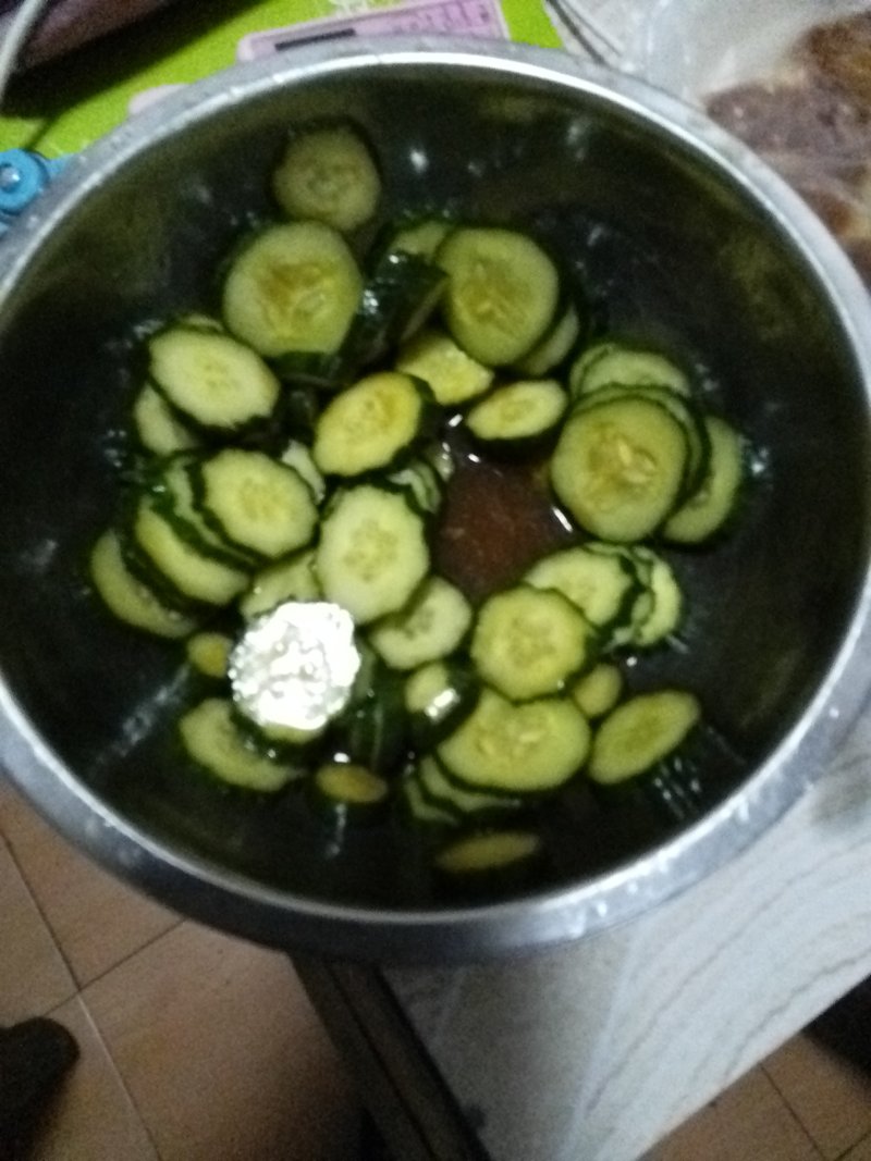 6:黄瓜腌10分钟后控去水分