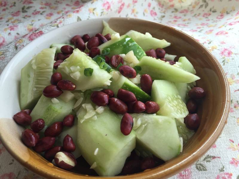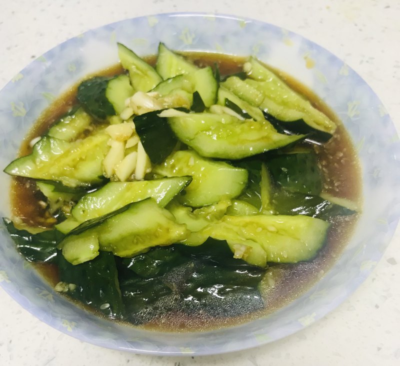 黄瓜一根;蒜瓣适量;