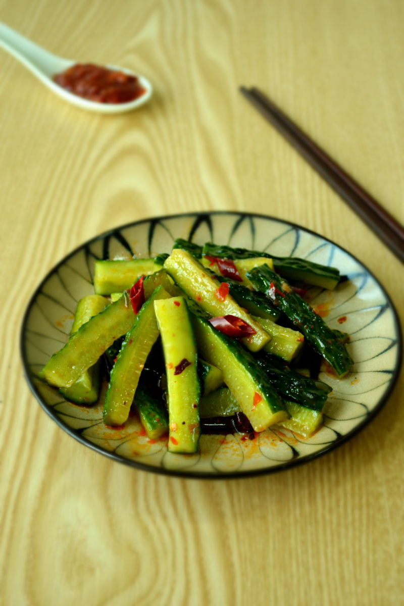 黄瓜2根;干红辣椒2个;