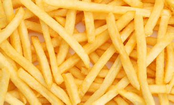 6:锅里放多一些的油,下土豆条炸成金黄色即可