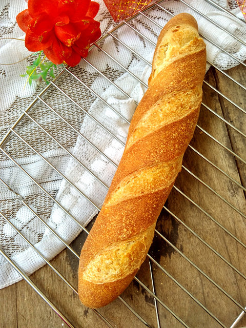 1.请根据自家烤箱调整温度和烘烤时间2.发酵时间根据季节不同会不同,要学会判断面团的发酵状态而不是仅仅以时间为依据,很多因素都会影响面团的发酵3.面粉的吸水性不同,液体类可以不全部加入,根据面团的情况调整4.这是做2根法棍的量,可以根据自己的情况调整