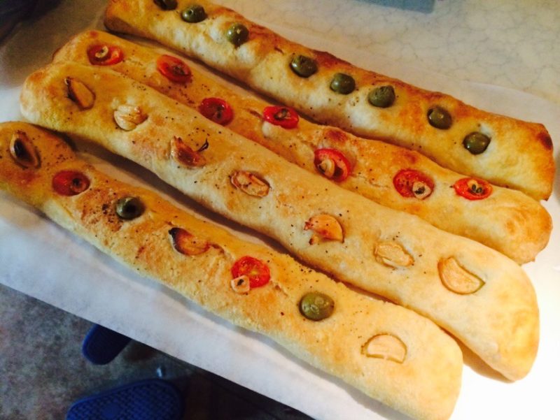 面粉三量杯;水1.5量杯;橄榄油适量;酵母1克 (1/4茶匙);盐2克 (1/2 茶匙);糖3克 (3/4茶匙);
