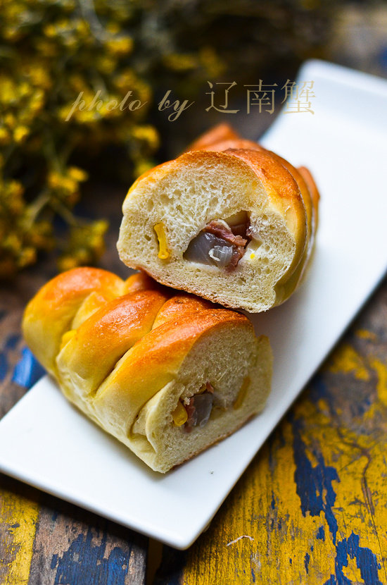 1、用这种方法做馅料面包,挺方便的。2、这个配方出来的面包口感比较韧,很耐嚼,也很香。