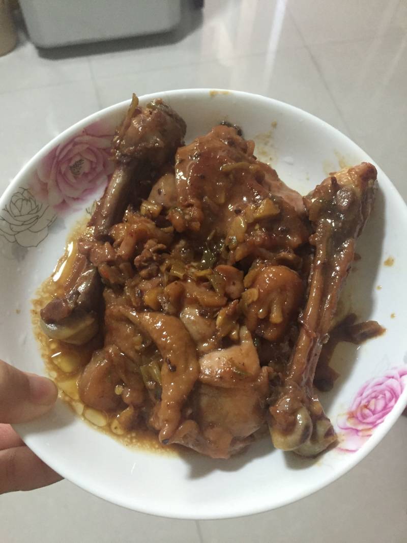 16:鸡腿也熇的差不多了,撒入味精提鲜收汤汁即可
