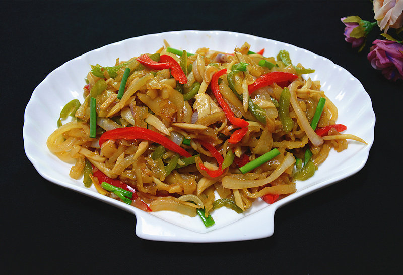 粉皮适量;洋葱适量;杏鲍菇适量;青椒适量;红椒适量;葱适量;