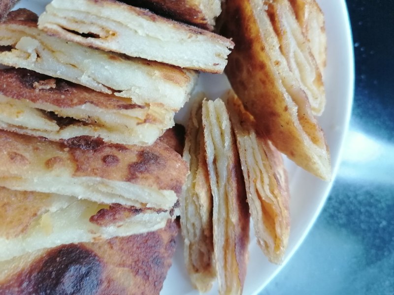 5:擀成薄片。不要太薄。,太薄会破坏层次感。放锅里小火煎熟。