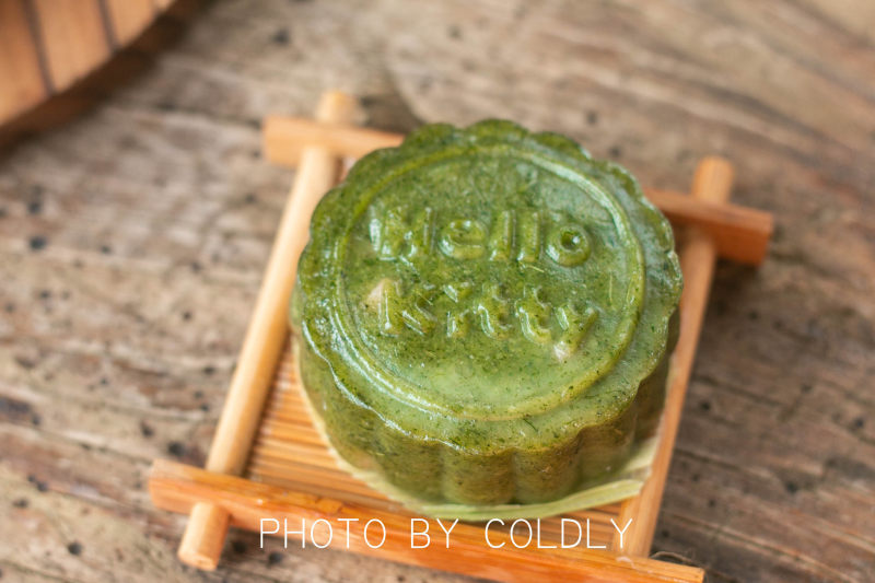 22:收口向下放入学厨的KITTY月饼模具压出形状。