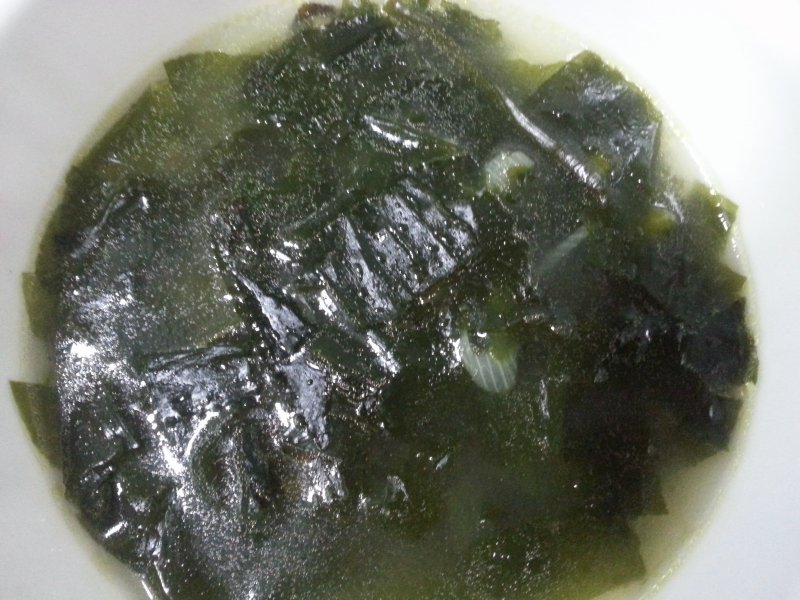 3:锅中倒入少许香油,开中火,油热后放入葱蒜炒香,再倒入海带煸炒几下,倒入1升清水,加盐、胡椒粉和牛肉粉调味,水开后改小火煮15-20分钟,即可。