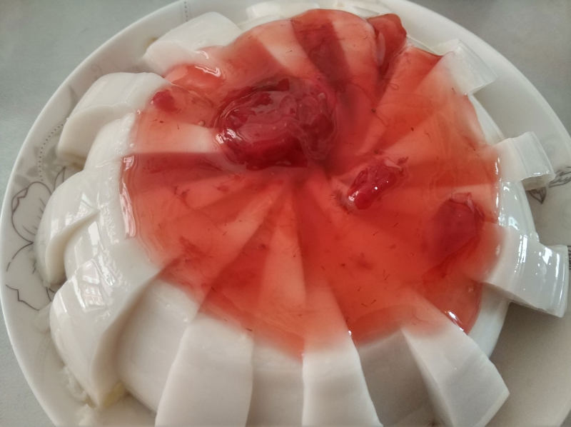 7:把溶液趁热倒入模具,冷藏2小时脱模,或者冷冻层半小时脱模。
