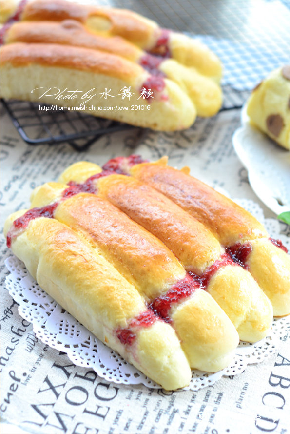 高粉250克、;糖45克、;牛奶100克;黄油20克;蛋液25克、;干酵母3克、;