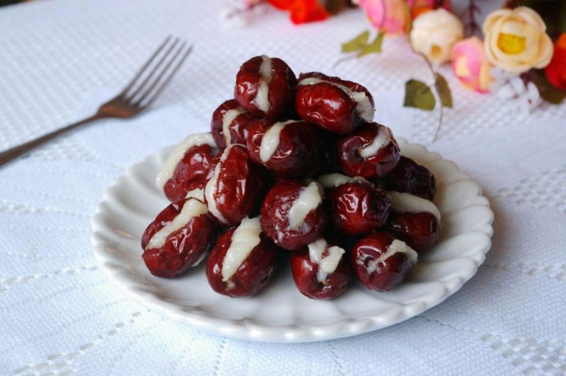 5:剩下的红枣也是如此,制作完毕后摆入盘中。
