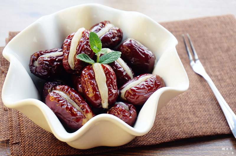 1:红枣选择差不多大小的,如果很干,用水泡开再去核。我用的是中等个头的和田玉枣。