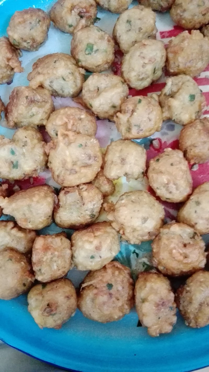 4:把面粉加水调成微湖状,喜欢皮厚的可调干点,喜皮溥的调水点,调好后,把油烧开,抓好的糯米球放面湖里粘几下,直接放油里炸,炸成金黄色就可,