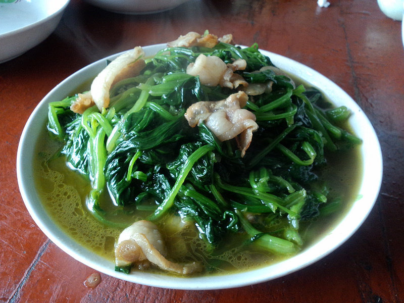 3:过中倒少许油七成热放入葱花和肉煸炒肉变白,放花椒粉,酱油,爆锅炒,放入菠菜炒掉菠菜本身的挺度,放适量盐盖盖闷五分钟,调入味精出锅